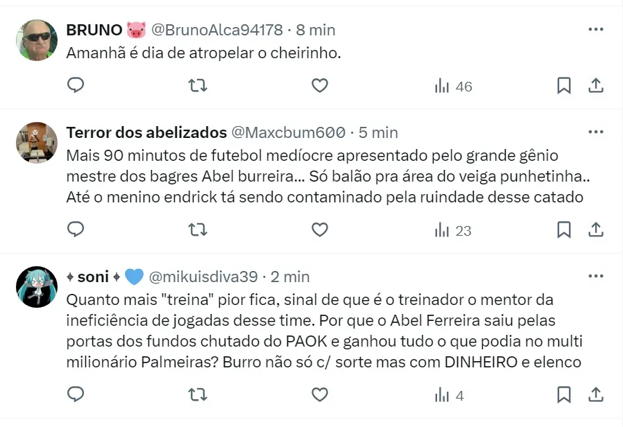 Em entrevista após derrota para o Internacional, Abel projetou o jogo contra o Fla e disse que não tem como competir financeiramente com o Rubro-Negro. O profissional destacou que o Alviverde consegue rivalizar pela organização do clube.