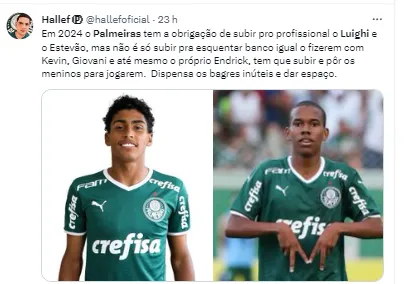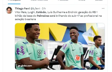 A apuração do jornalista revela que três Crias da Academia, que vem se destacando, devem compor o elenco profissional do Verdão no ano que vem sob o comando de Abel Ferreira.