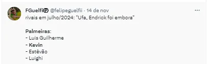 Vale destacar que o jovem Kevin já teve algumas oportunidades neste ano no time palmeirense. Já os outros dois ainda não tiveram oportunidades entre os profissionais do Alviverde Paulista com Abel nesta temporada.