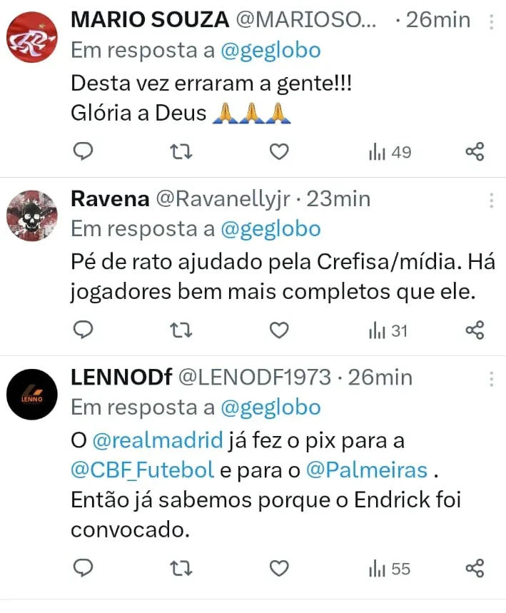 Foto: Reprodução – Repercussão da convocação de Endrick