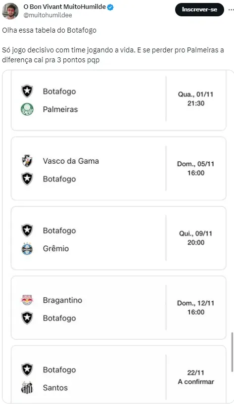 “É uma sequência muito boa da qual estamos vindo, para dar confiança para o restante do campeonato. Estamos vindo de uma sequência boa“, concluiu o atleta, destacando o bom momento do Palmeiras.