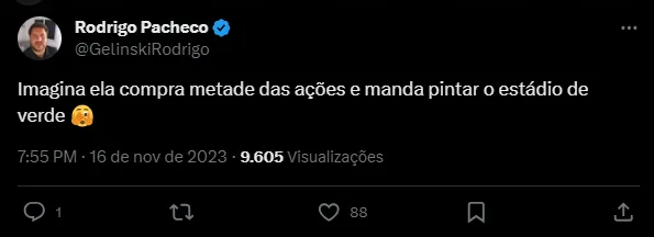 “Eu acho que (na compra de cotas) vai ter ali são-paulino, santista, palmeirense eu não sei… Aquele mais de finanças vai que ele entende que é um produto financeiro bom e faz um investimento”, completou o diretor.