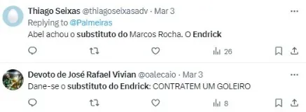 A questão é que o Palmeiras trata essa reposição em específico com cautela, pois sabe da necessidade de fazer um alto investimento para contratar alguém que consiga chegar, ao menos, perto do nível do jovem.