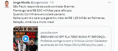 “Desde 2015, isso mudou tudo começa com Alexandre Matos que era o diretor executivo de futebol do Palmeiras e contratou João Paulo Sampaio para cuidar das categorias de base. João já havia feito um trabalho bem legal no Vitória e transformou a base do Palmeiras a ponto de o verdão desde 2015 ter faturado apenas com transferência de atletas formados na base R$ 1.25 bilhão. Esse número me foi confidenciado por uma pessoa do próprio Palmeiras”, completou o jornalista.