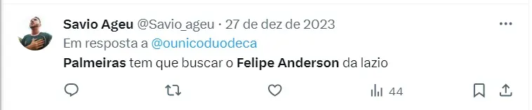 Com isso, alguns nomes começaram a ser especulados nos bastidores para a temporada. Dentre eles, o de Felipe Anderson, atualmente no Lazio, tem contrato até o fim da temporada, mas segue sem acordo para a extensão do vínculo.