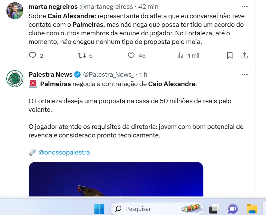 De acordo com a Itatiaia, a diretoria do Palmeiras já teria alinhado com o estafe de Caio Alexandre com detalhes como salário, tempo de contrato e bonificações. O volante é considerado “um jogador que Abel não tem no seu elenco hoje”.
