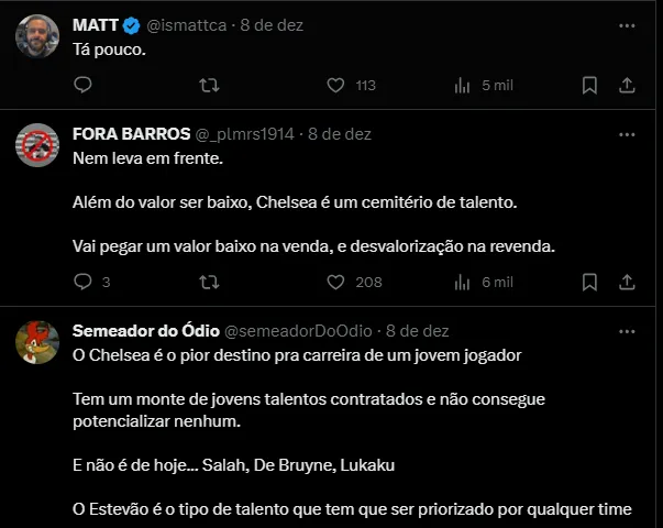 Na última sexta-feira (9), o portal Goal noticiou que o Chelsea já demonstrou interesse na contratação da joia e o acordo pode chegar a 40 milhões de euros (R$ 212 milhões), mas as conversas estão em estágio embrionário.