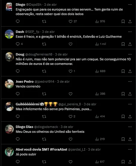 Além disso, ele ainda destacou que as chances da joia deixar o Palestra por agora são baixas. Os Reds Devils devem seguir avaliando a joia e aguardar ele ter seus primeiros minutos como profissional para fazer uma proposta.