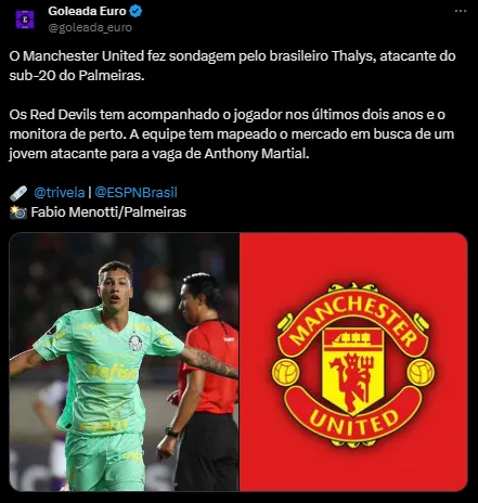Em vídeo publicado em seu canal do YouTube, Jorge Nicola repercutiu a informação do site Trivela sobre o interesse do Manchester United no atacante. Porém, destacou que até agora foi apenas uma sondagem e uma proposta concreta ainda deve demorar um pouco.