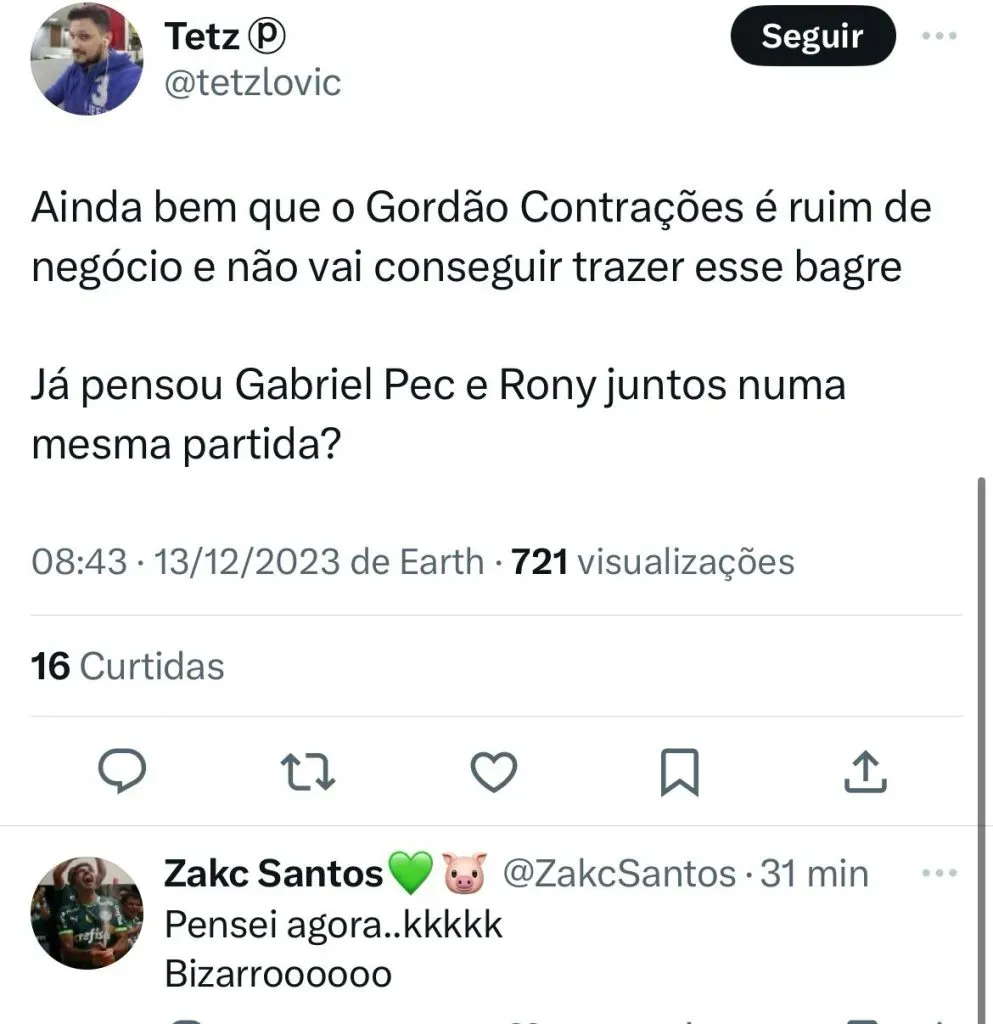E segundo apuração do portal o Lance!, o alvo escolhido pela diretoria alviverde foi Gabriel PEC, do Vasco da Gama. O atacante fez uma boa Série B pelo Vasco e chamou a atenção de Leila Pereira, Anderson Barros e Abel Ferreira.