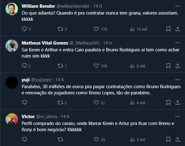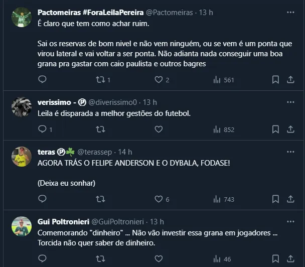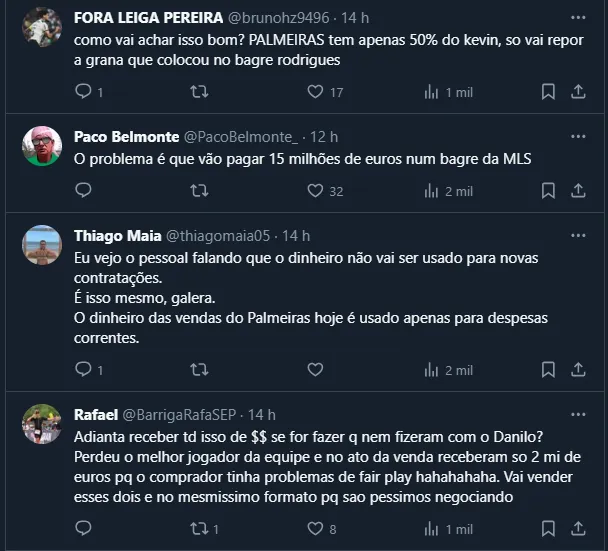Após uma postagem da página ‘Palestra News’, na qual a dupla foi exaltada pelas contratações de Caio e Bruno, o tema gerou um burburinho e o assunto esquentou a madrugada do Palmeiras.