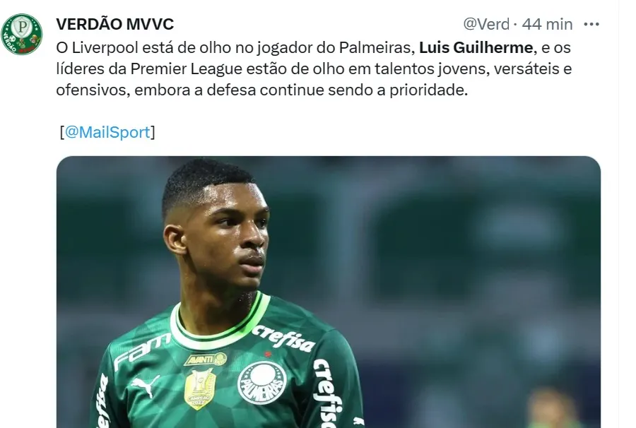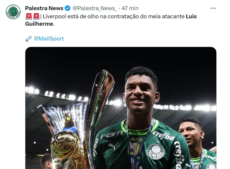 Luis Guilherme na mira do Liverpool