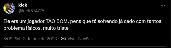 Será a segunda cirurgia do jogador nessa região, já que sofreu a mesma lesão em 2022 e ficou nove meses parado, se recuperando para voltar. No entanto, se machucou novamente contra o Corinthians no último mês de outubro.