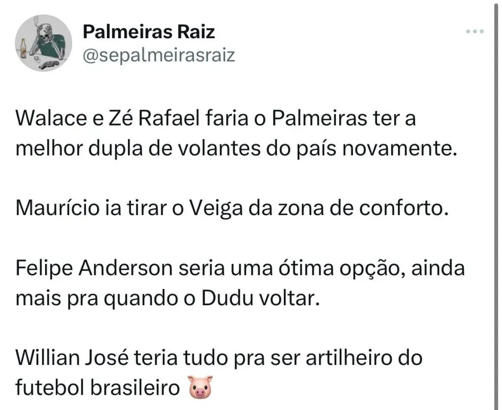 Ainda de acordo com Diogo Firmino, o Palmeiras pode ainda buscar mais um camisa 9 caso Abel Ferreira entenda que seja necessário. Para poder renovar mais tempo com Abel e também não correr risco de perder a eleição em novembro de 2024, Leila Pereira quer ser protagonista no mercado.