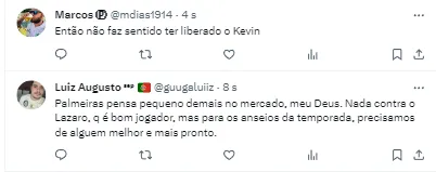 Vale ressaltar que essa busca por um atacante que atue pelos lados de campo se faz pela carência no elenco. Bruno Rodrigues e Dudu estão lesionados e Kevin e Artur foram vendidos no começo deste ano.