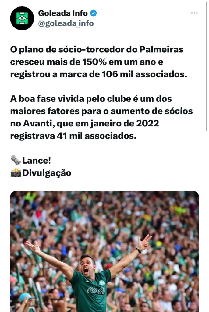 Para se ter noção, segundo informado pelo GE, em maio de 2022, quando houve o registro do menor número de mortes ligados por Covid, o Verdão tinha um quadro de sócios tinha 65.750, ou seja, o número aumentou 2,7 vezes.