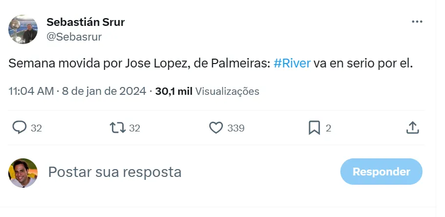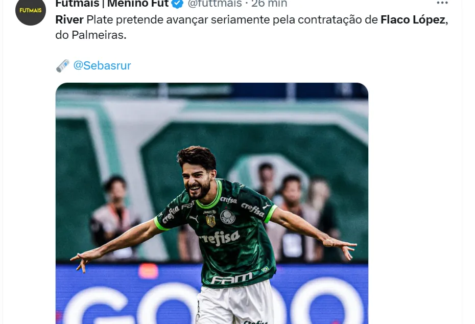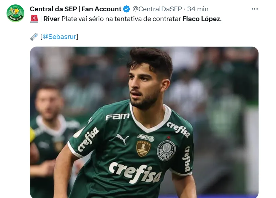 A grande movimentação do futebol argentino nesta semana deve ser uma investida do River Plate a ‘Flaco’ López, do Palmeiras. O jornalista portenho Sebastián Srur, da Rádio Continental, informa que o clube de Buenos Aires ‘vai vir seriamente’ para a operação.