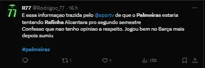 Vale destacar que Rafinha foi oferecido ao time e para realizar ou não um avanço na próxima janela de transferências, a diretoria palmeirense esperava um parecer do técnico português.