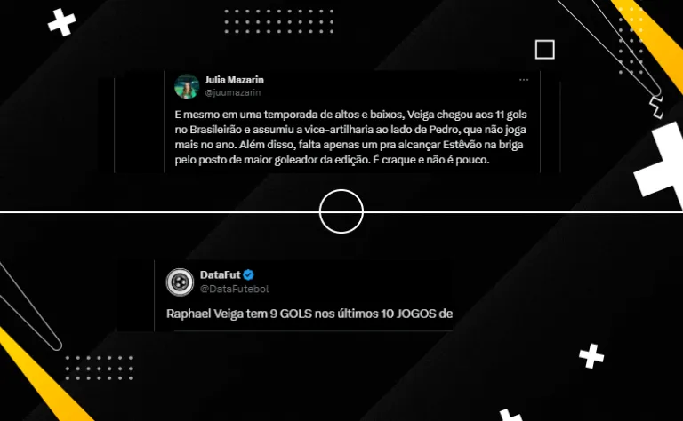 “E mesmo em uma temporada de altos e baixos, Veiga chegou aos 11 gols no Brasileirão e assumiu a vice-artilharia ao lado de Pedro, que não joga mais no ano. Além disso, falta apenas um pra alcançar Estêvão na briga pelo posto de maior goleador da edição. É craque e não é pouco”, analisou um palmeirense.