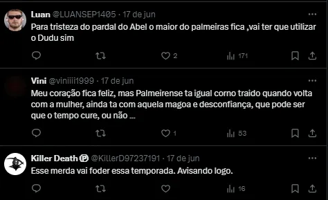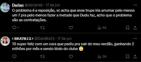 O entendimento de Leila Pereira e companhia é que Dudu não conduziu bem todo o cenário, até pelas coisas que foram ditas pelo jogador, como, por exemplo, que a direção queria sua saída. O posicionamento do Clube é não renovar com ele após o fim de 2025.