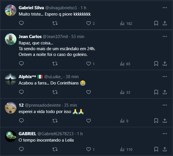 Isso porque, além de não conquistar nada desde 2019 e de perder a maioria dos confrontos diretos, os bastidores estão agitados no Parque São Jorge. Não à toa, a repercussão nas torcidas rivais é enorme.