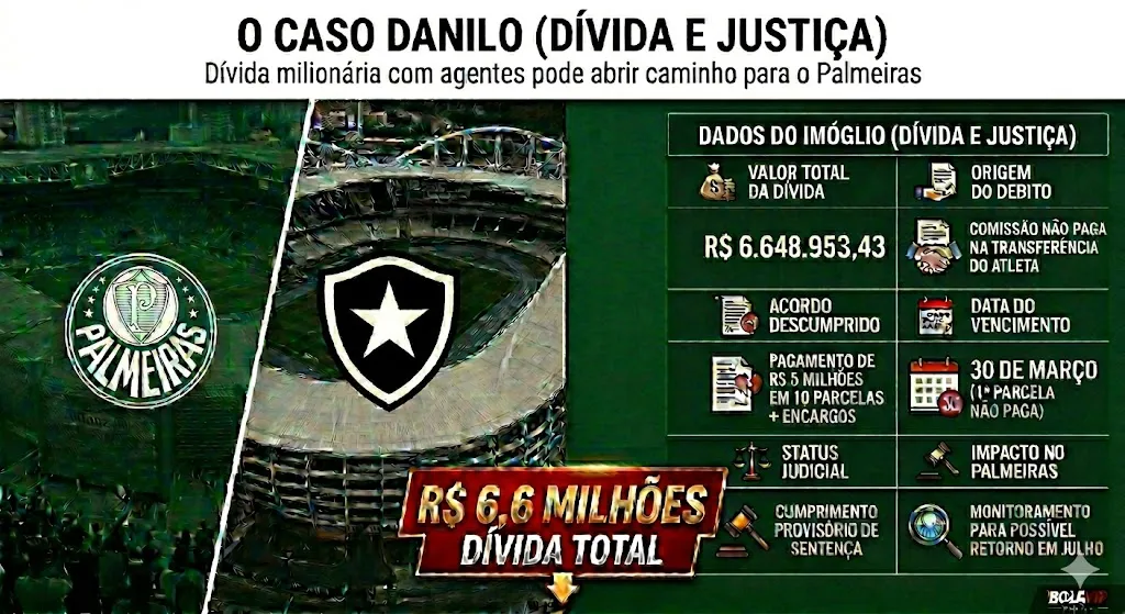O futuro de Danilo virou uma incógnita, mas, um fato chamou atenção do Palmeiras. Isso porque os agentes do atleta acionaram a Justiça por conta de uma dívida envolvendo pagamentos.