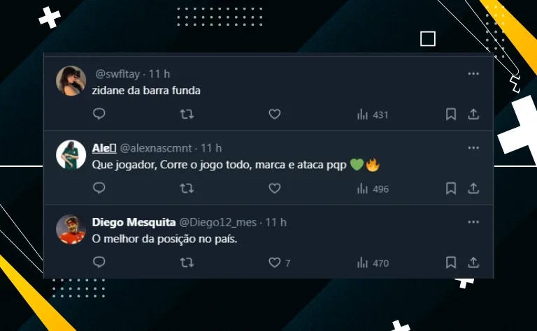 Por fim, é legal destacar que a vitória colocou o Palestra com sete pontos na competição. Agora, o Verdão fará uma sequência de dois jogos em casa, contra Novorizontino e Bragantino. Veja os elogios da torcida a Richard Ríos: