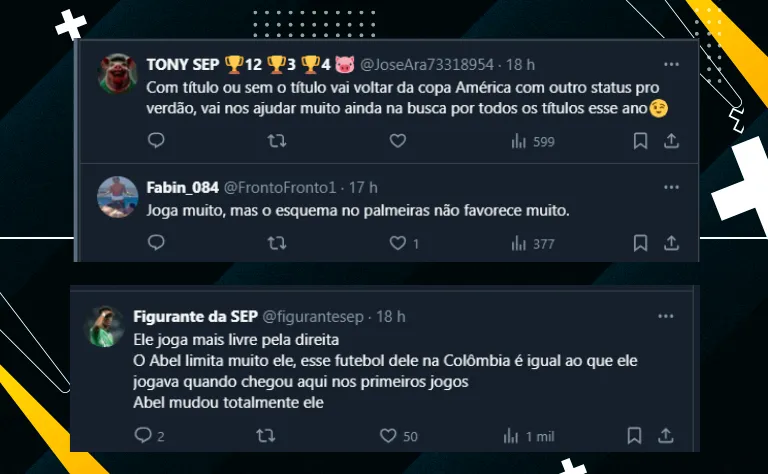 Até por isso, com a informação chegando até a torcida do Palmeiras, alguns torcedores resolveram criticar a forma como Abel Ferreira o escala no futebol brasileiro, ou seja, de forma mais recuada.