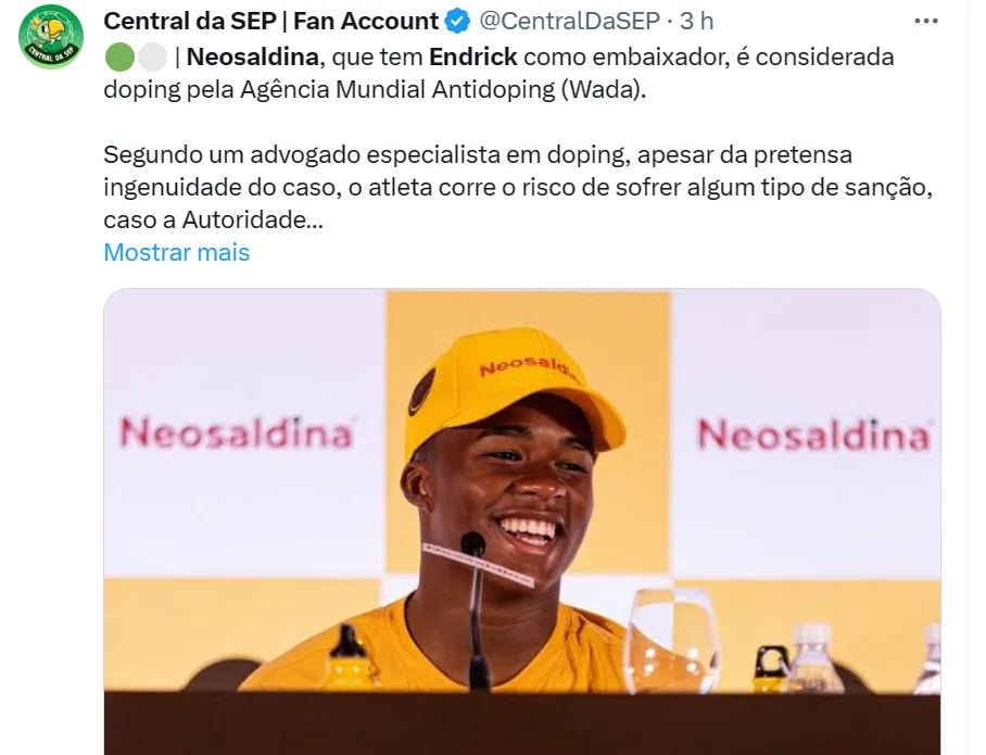 “O Endrick deve ter recebido convite da indústria farmacêutica, só que não se atentaram para essa situação (…) Houve falta de conhecimento da matéria. Devem ter feito contrato, mas não viram se estava certo ou não”, afirmou o advogado Thomaz Mattos de Paiva em contato à ‘Máquina do Esporte’.