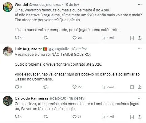 O ídolo Alviverde também tocou em um ponto que foi bastante indigesto no Derby, a falha de Weverton. Inclusive, o problema reverberou nos bastidores das Alamedas, tanto, que o Clube blindou o atleta da avalanche de críticas e se posicionou sobre sua titularidade.
