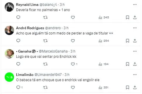 Entretanto, a saída do promissor jogador de 17 anos é algo que mexe com a torcida Alviverde, pois sabe que perderá um atleta diferenciado e um dos trunfos de Abel Ferreira.