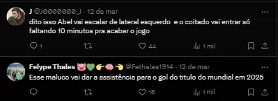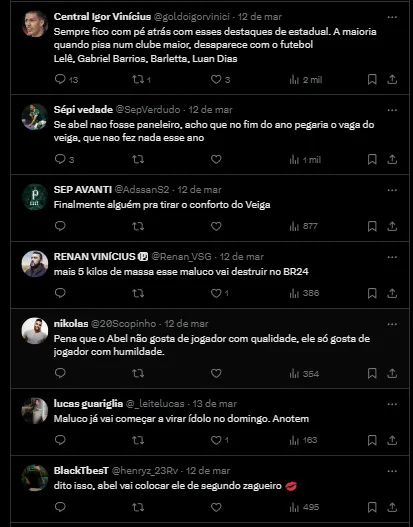 Ainda foi revelado que desde a oficialização da sua contratação, palmeirenses conversam com ele e isso se intensificou agora, antes do duelo entre o atleta e seu futuro Clube. “Muitos torcedores do Palmeiras me mandam mensagens, mas estou focado no Novorizontino. Estou trabalhando aqui. Pretendo, junto com meus companheiros, chegar numa final. Mas é de passo em passo”, concluiu.