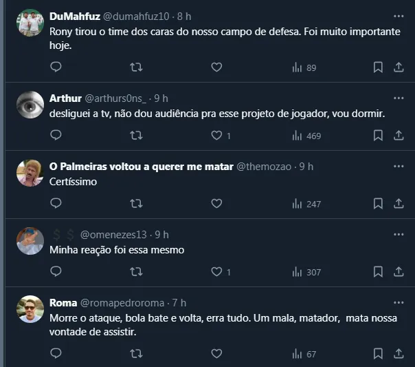 Vale lembrar que, mesmo com parte da torcida pedindo sua saída do clube, Rony jamais baixou o ritmo e segue tentando ajudar o elenco da melhor forma. O próximo compromisso será dia 23 de maio, contra o Botafogo-SP, pela Copa do Brasil.