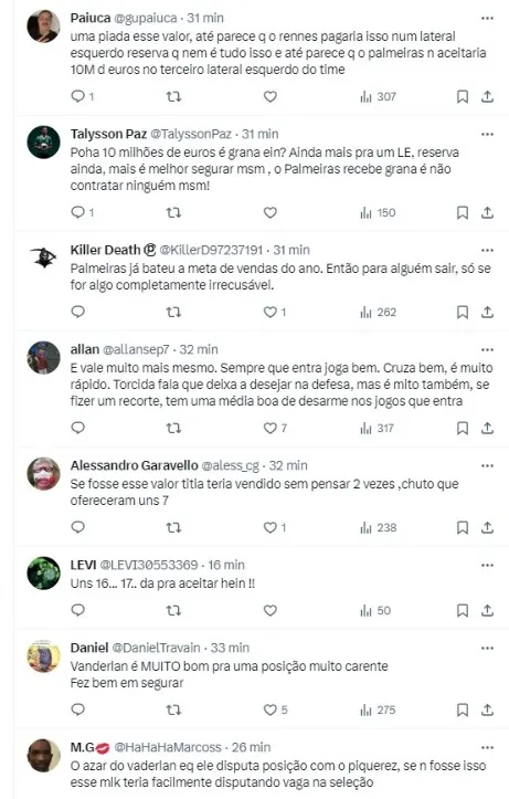 Um caso desse tipo, por exemplo, aconteceu na noite da última quinta-feira (11): após uma oferta do Rennes, da França, ser feita de forma oficial pelo lateral-esquerdo Vanderlan, de 21 anos, a resposta foi negativa.