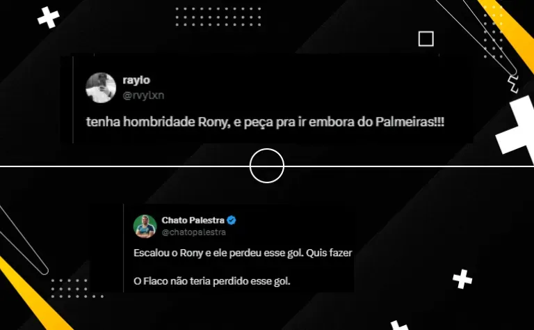 Foi possível registrar muitos comentários negativos de torcedores que mostraram sua total insatisfação com o atacante. “Dá vontade de chorar de desgosto toda vez que o Rony toca na bola e automaticamente perde a posse”.
