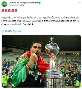 Porém, agora, seu futuro está em aberto. De acordo com informações publicadas no Uol, o Al-Sadd, do Catar, teria feito uma oferta astronômica para tirar Abel Ferreira. Seria uma proposta da vida para o comandante português. Vale destacar que outros nomes podem deixar o Palestra.