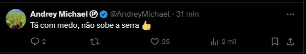 “Tá com medo, não sobe a serra”, “Já tão chorando?” e “Já estão chorando por um jogo que nem aconteceu ainda? Quero ver se vai ter esse chororo se forem campeões”, foram alguns comentários.