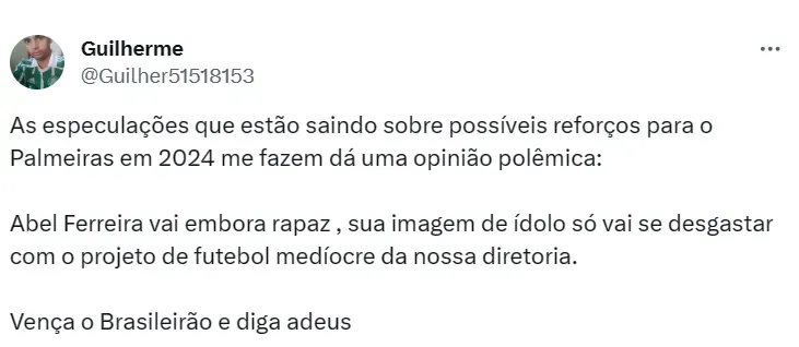 O próximo compromisso do clube paulista é fora de casa, contra o Fortaleza, no domingo (26). A boa rola às 18h30. Enquanto isso, tem gente querendo embarcar no elenco vencedor comandado pelo professor Abel.