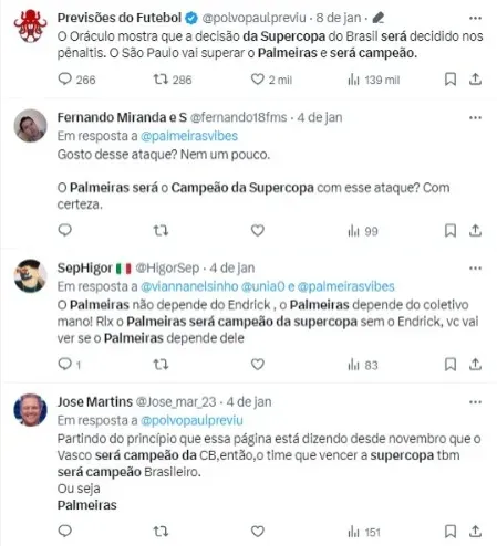 Vale lembrar que o Palmeiras é o atual campeão da competição, pois superou o Flamengo por 4 a 3. A intenção é aproveitar a boa fase de Raphael Veiga, por exemplo, para superar o rival e seguir em alta na temporada.