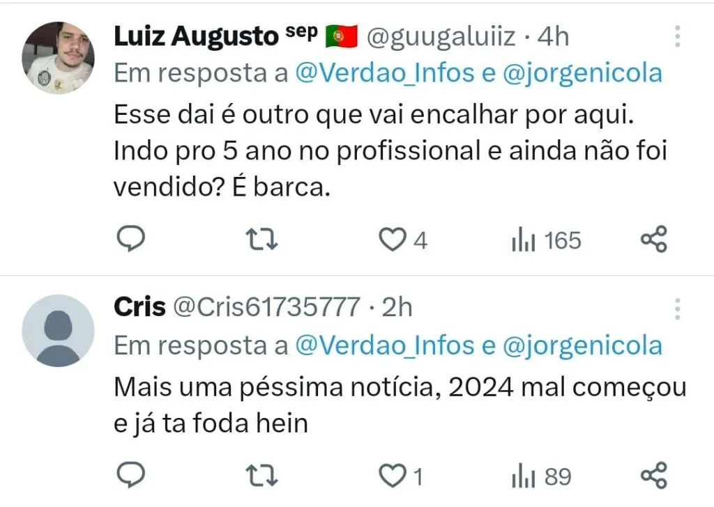 Ainda de acordo com o jornalista, o empresário teria justificado justamente que a lesão de Menino torna o negócio desinteressante tanto para o Fenerbahçe quanto para o Palmeiras.