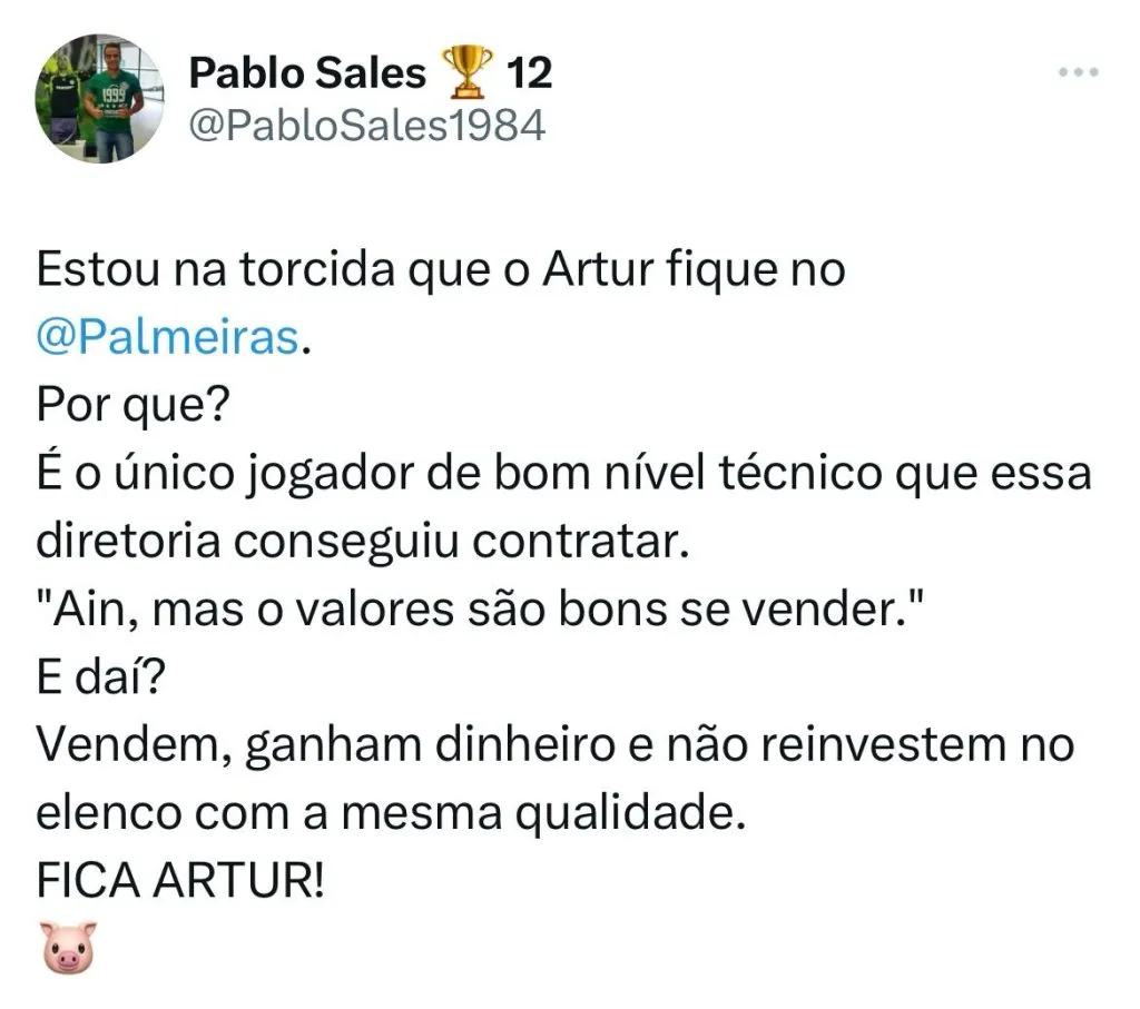 Torcida do Palmeiras debate sobre possível venda de Artur