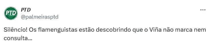 “Silêncio! Os flamenguistas estão descobrindo que o Viña não marca nem consulta…”, respondeu um palmeirense, que contou com apoio de outros alviverdes e compararam Viña com Piquerez.