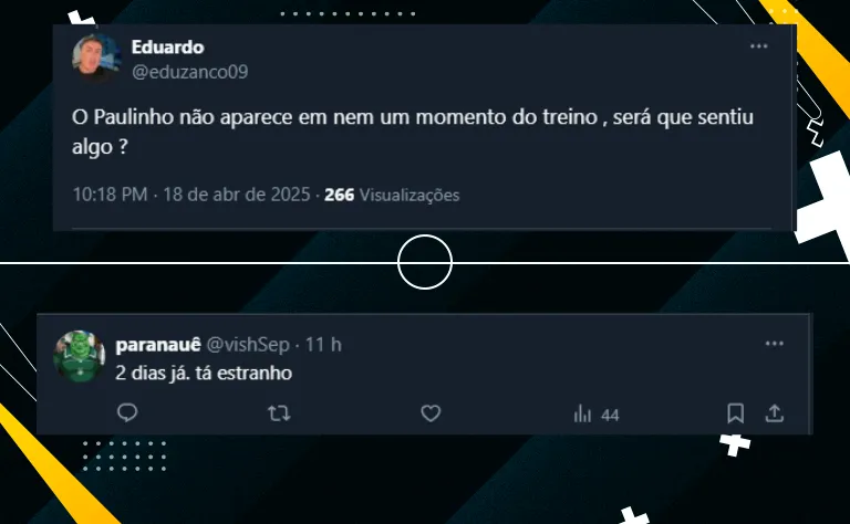 Por fim, embora Paulinho ainda não tenha caído nas graças do torcedor, a expectativa é muito grande. Confira abaixo alguns comentários repercutindo sua ausência nos treinamentos de ontem (18):