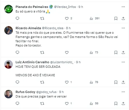 Após pegar o América-MG, o Palmeiras enfrenta o Fluminense no Allianz Parque no próximo domingo (3). A partida acontece pela 37ª rodada do Campeonato Brasileiro, às 16h (horário de Brasília).