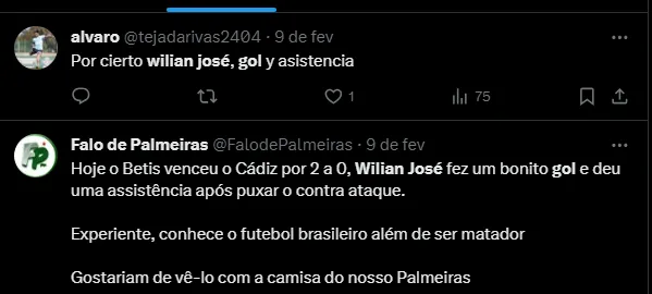 Isso porque Willian José foi o grande destaque do Bétis na vitória sobre o Cádiz, por 2 a 0, fora de casa, com um gol e uma assistência. Após o jogo, Pellegrini mandou a real aos times interessados pelo jogador.
