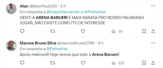 “Isso e uma coisa que o palmeirense tem que assimilar. A própria grama artificial só está ali porque tem show para caramba, porque inicialmente teve vários problemas. Palmeirense vai ter que lidar com isso por alguns bons anos, finalizou.