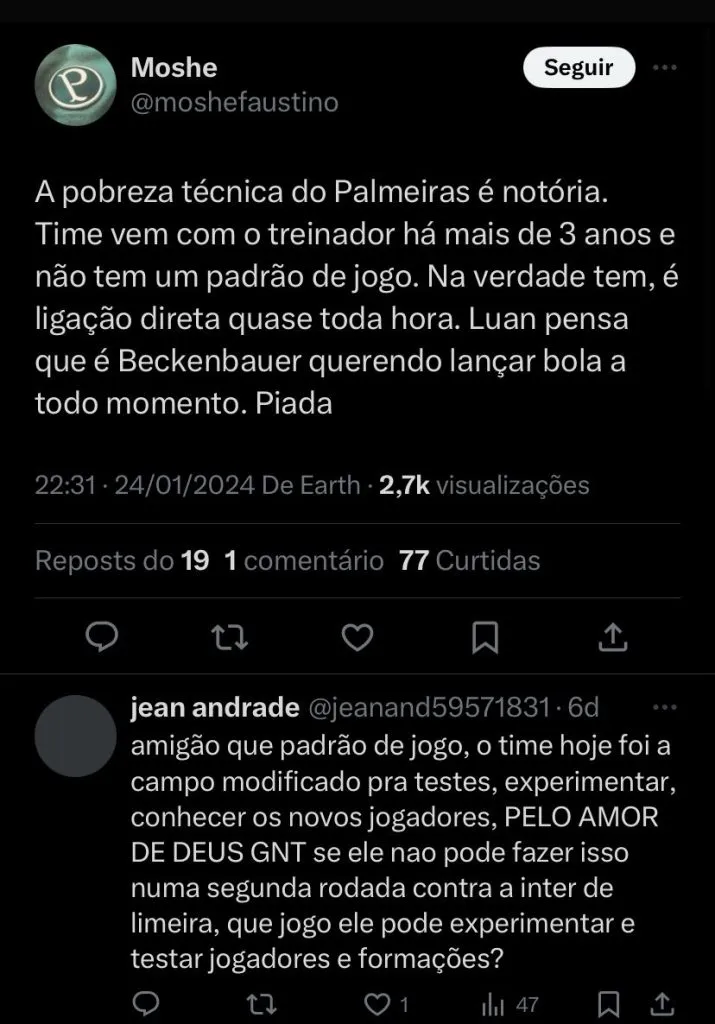 O que dizem oq torcedores do Palmeiras: