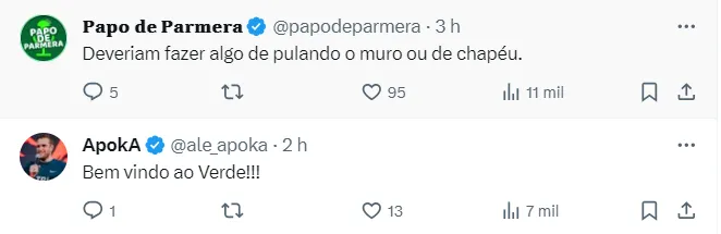 Ele ainda brincou com o fato de agora ter a oportunidade de estar ao lado do ponta palmeirense Dudu: “Pô, marcar o Dudu é uma coisa que é muito difícil cara. Mas o Dudu, agora estou do seu lado e… agora estamos juntos!”, concluiu o jogador.