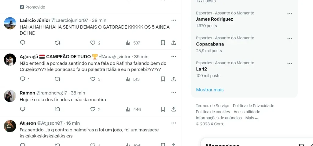 Foram várias as brincadeiras e chacotas no Twitter direcionadas a Rafinha. Uns andaram dizendo que o lateral tendo ‘amnésia’ ou a goleada do Palmeiras danificou os neurônios do defensor.