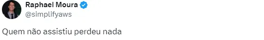 “Quem não assistiu perdeu nada”, falou mais um, na sequência.” Que jogo ruim mds” completou o outro.